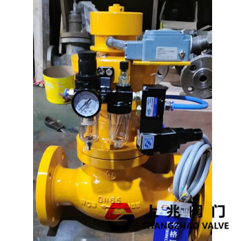 QDQ421F 氣動緊急切斷閥是采用活塞式氣動執(zhí)行器,為彈簧復(fù)位常閉型切斷閥氣缸的進(jìn)氣方向裝有易熔塞,氣源壓力為0.4~0.7Mpa。氣動緊急切斷閥可以配電磁閥、氣源減壓閥、行程開關(guān),目的是為了遠(yuǎn)程能有效的控制閥門的情況,在必要時采取斷電或斷氣達(dá)到緊急切斷作用,氣動緊急切斷閥所配的易熔塞是為了環(huán)境溫度到達(dá)易熔塞最高熔點時自動熔化達(dá)到氣缸里的壓縮迅速排放使彈簧快速切斷閥門。氣動緊急切斷閥可用于液氨、液化石油氣、天然氣、氮氣、沼氣等易燃?xì)怏w或液體的管道。
