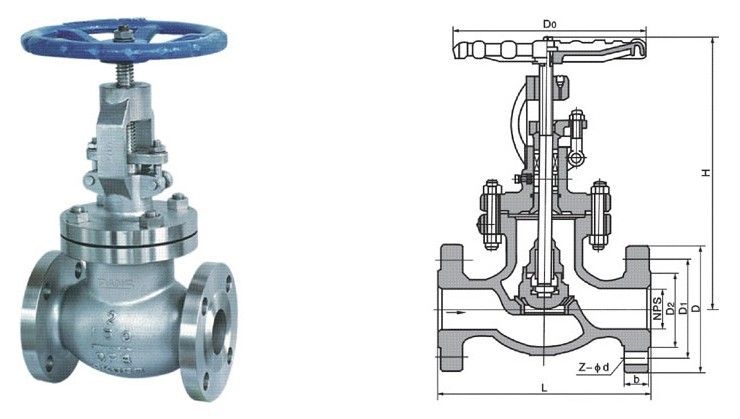 J41Y 美標(biāo)不銹鋼截止閥主要外形尺寸: